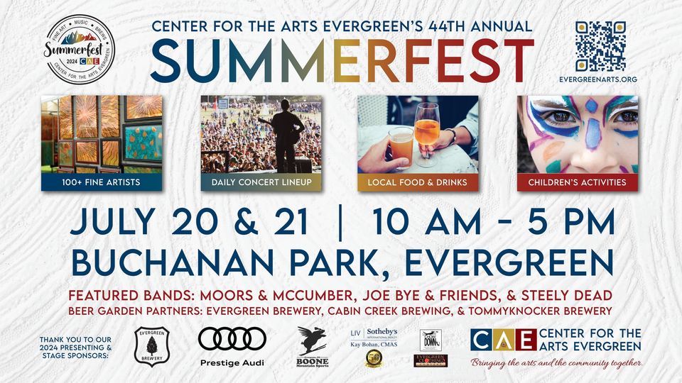 July 20-21 at Buchanan Pk in Evergreen. 44th Annual Summer Fest .Celebrating the Visual Arts and Evergreen's Creative Community.